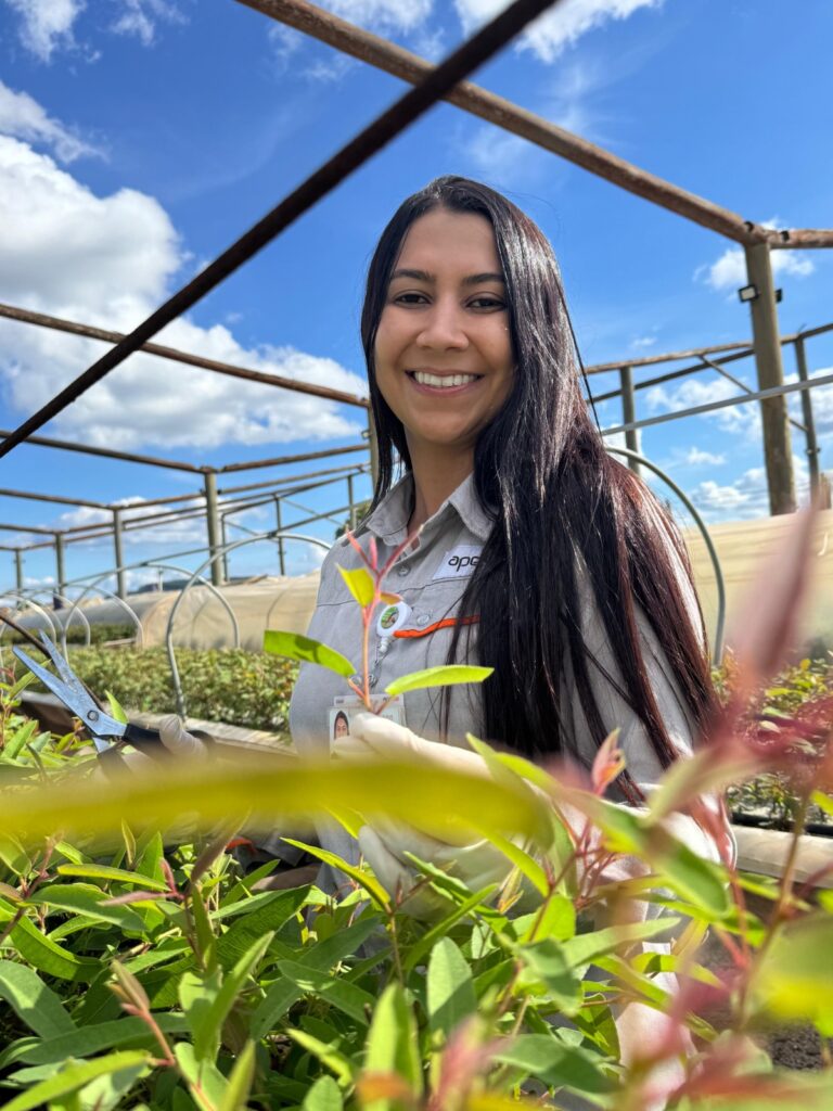 Sua tese de doutorado, concluída em 2024 e desenvolvida em parceria com a empresa, investigou técnicas voltadas à melhoria do enraizamento de clones recalcitrantes – materiais que apresentam maior dificuldade na propagação vegetativa. Os resultados foram expressivos: o índice de enraizamento registrou aumento de até 50%, ampliando de forma significativa o aproveitamento final na produção de mudas.